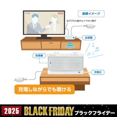 充電の際に受信機本体(スピーカー)を、テレビ周りに戻す手間がありません。