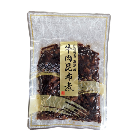 ■素材:昆布(北海道産)、牛肉、砂糖、醤油、米発酵調味料、鰹節エキス/調味料(アミノ酸等)、酒精、(一部に小麦・大豆・牛肉を含む)