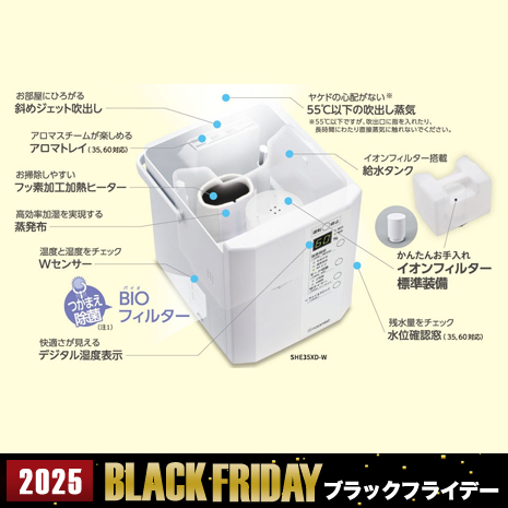 ●蒸発布がスケール(水に含まれるミネラル分等)を取り除くため、吹き出し蒸気はクリーン。