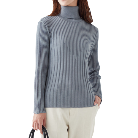 <セルヴァン>リブ柄タートルプルオーバー
