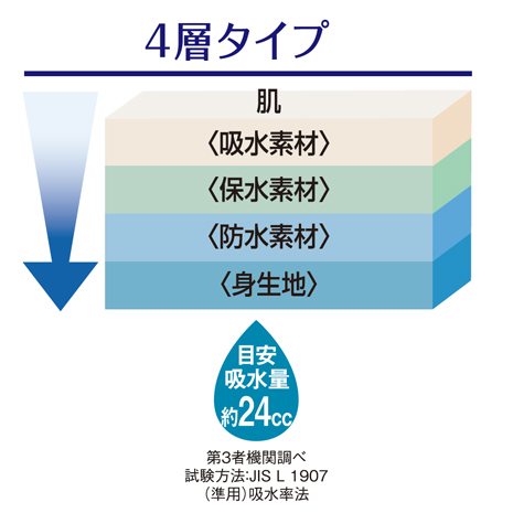 ※吸水量表示はおおよその目安です。使用状況によって吸水量が異なる場合がございます。
