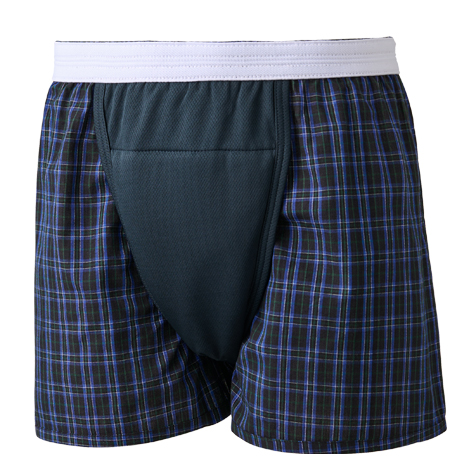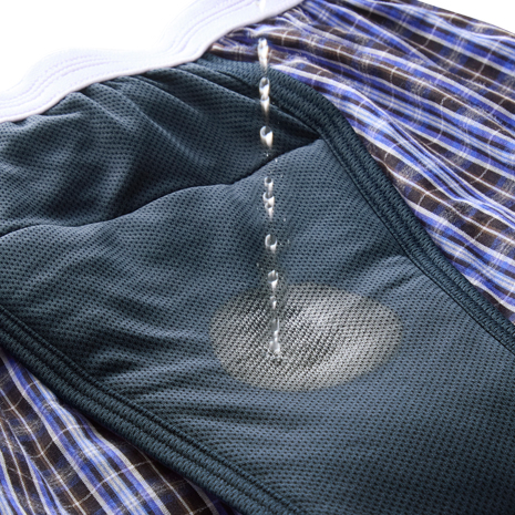 軽失禁対策トランクスです。前面内側に四層タイプの吊り下げ構造の吸水パッドを配置していて、約40ccまで吸水することができ、ちょいモレの染み出しを防ぎます。(※使用状況によって吸水量が異なる場合がございます。)