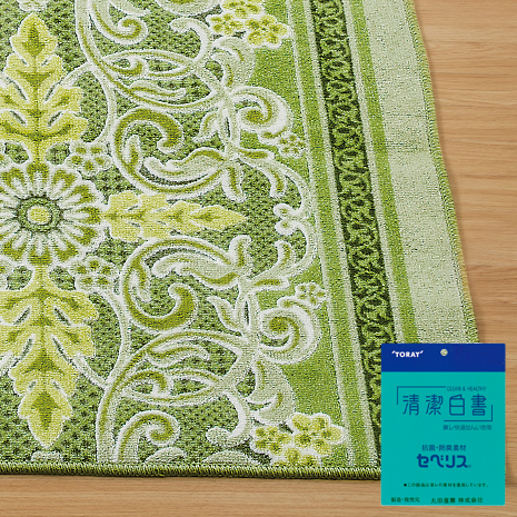 抗菌防臭加工を施した素材を使用し、裏面は合成ゴムで滑りにくい加工を施しております。床面の冷え・すべり・騒音の対策に使用いただけます。洗濯機で丸洗い(※洗濯ネット使用)ができてお手入れも簡単です。