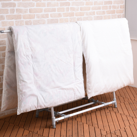 場所をとらずに布団を干したり洗濯ものを乾かすことができます。ふとんが横からスっと入る風通しの良いA型形状で、最大2枚干せます。ハンガーフック(10個)付でハンガーの干し物もずれません。折りたたみ式でコンパクトに収納可能。