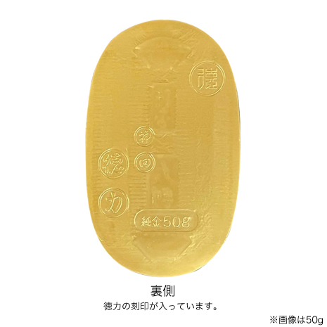 近年、最高値を付けており注目されている純金製の製品です。金製品の中で小判はとても人気のある商品ですので、この機会に是非ご愛顧ください。老舗ブランドの「徳力本店」は、享保12年(1727年)、徳川幕府の命を受けて金銀の改鋳業を始めて以来、小判・大判を作り続けてきました。2027年には創業300年を迎える、東京・神田に店を構えている歴史ある老舗です。徳力本店謹製の証として、大判・小判の裏面には「徳力」の刻印が入っています。