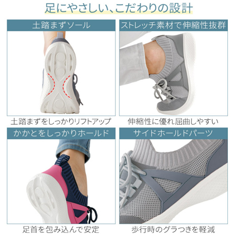 ・まるで靴下のようなフィット感!伸縮素材なので母趾が痛くなりにくく脱ぎ履きがスムーズ