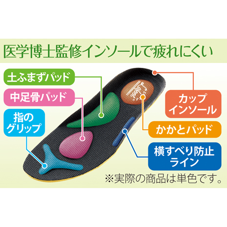・医学博士監修のインソールで長時間歩行でも足が疲れにくい