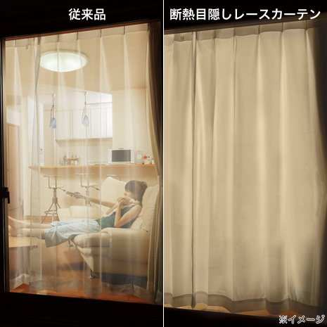 100×198cm)断熱目隠しレースカーテン 同サイズ2枚組