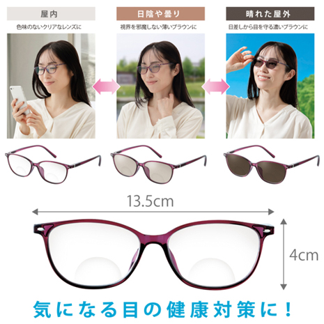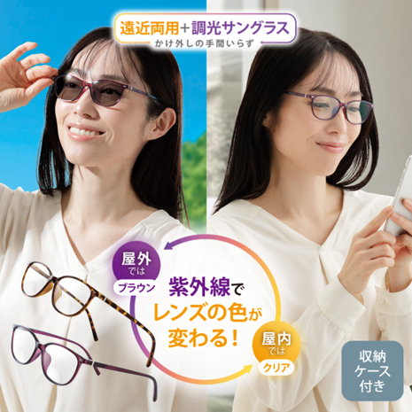 遠近両用+調光+紫外線予防、3つの機能がこれ一本で叶う便利なメガネ!