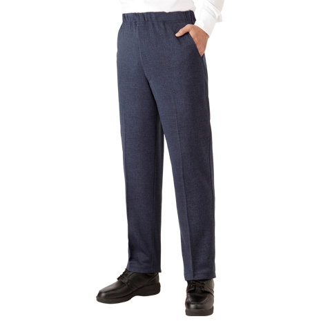 裾上げ不要のゆったり快適パンツです。ウエストが総ゴムなので窮屈感がなく、ウエストゴム部分の内側に穴が開いているので、締め付け感の調整やゴムの取り替えがしやすくなっています。ご自宅の洗濯機で丸洗いできます。伸縮性のあるニット素材で楽な着用感。秋~冬に重宝するアイテムです。