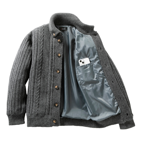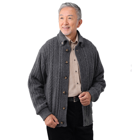 人気のドンキー襟のお洒落なカーディガンです。ボリューム感のあるニットの襟が、首回りを暖かく包みます。滑りの良い裏地は、袖を通す際のわずらわしさからは無縁で快適です。独特で高級感のある編地が品の良い大人のカジュアルにぴったりです。存在感のあるボタンダウンの襟がお洒落です。