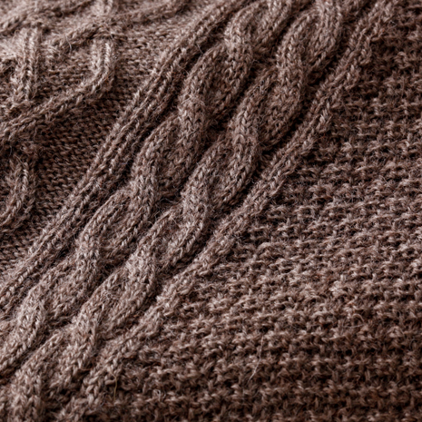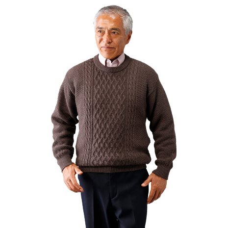 日本製ならではの丁寧な編み込みとふんわりとした風合い。やわらかな手触りの高級感溢れる日本製セーター。前身頃にはケーブル編みの柄模様を施し、お洒落で高級感を感じさせます。中に着るシャツとの相性がよいクルーネック(丸首)を採用する事で、大人のカジュアルスタイルをコーディネート出来ます。ウール100%にこだわった暖かくやわらかい風合いのセーターです。