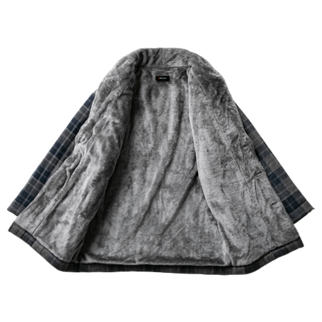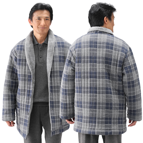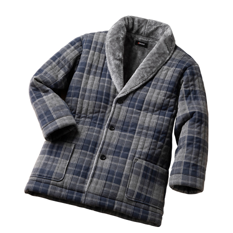 全体的に暖か中わた入りで身頃の裏地にはシャギーボアを使用、袖部分の裏地には中綿入りのキルト地を使用する事で、体は暖かく、袖まわりは動かしやすい工夫をしています。ソフトな肌ざわりで身体を優しく包み込みます。寒い季節に、ご自宅でのくつろぎ着として最適な一着です。これからの季節に一着は欲しい大人のガウン。部屋の中でもお洒落感がいっぱいです。