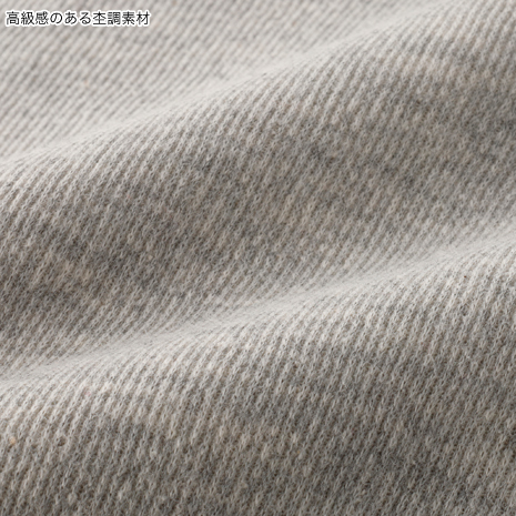 裏起毛で暖かい、寒い季節を快適に過ごすトレーナー。ゆったりした着心地で、襟元のデザインや杢調の生地感が上品な印象を与えます。襟と前立ての縁(ふち)取りを共生地配色にしてあり、高級感をアップさせます。手持ちのパンツと合わせやすい、シンプルなベーシックカラーです。