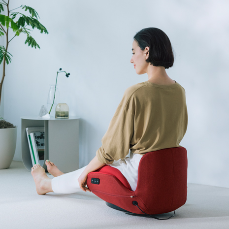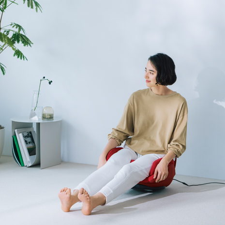 お尻の下、骨盤回りの4か所に搭載されたエアーバッグが、骨盤底筋と体幹を骨盤底筋に