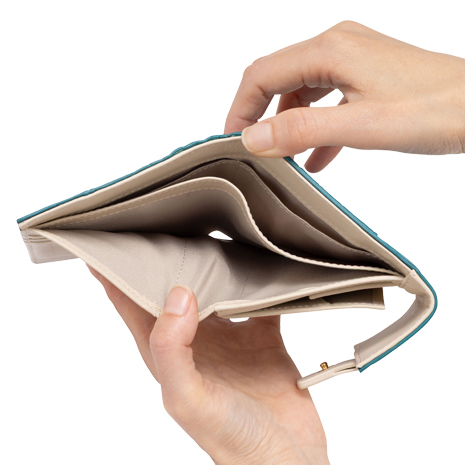 コンパクトながら、小銭入れは大きく開き中身が見やすく、さらに取り外し可能なカードケース付きでシーンに合わせた使い分けが可能です。