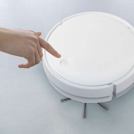 ボタン1つで部屋中くまなくお掃除できる「エイミー ロボットクリーナー」。