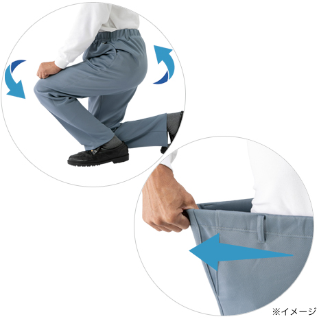 ■仕様:ウエスト総ゴム、ベルトループ付、前左右ポケット・前ファスナー付