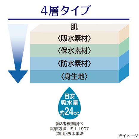 ※吸水量表示はおおよその目安です。使用状況によって吸水量が異なる場合がございます。