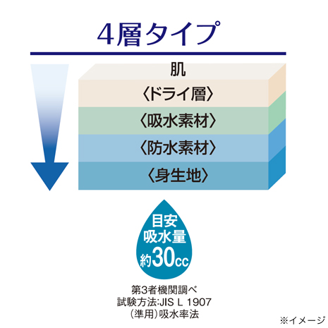 ※吸水量表示はおおよその目安です。使用状況によって吸水量が異なる場合がございます。