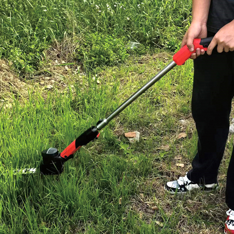 これ一台で簡単に芝生や生垣のお手入れができるため、専門の業者に頼まなくても様々対応ができるコードレス式マルチバリカンです。芝刈り用のバリカンで芝生を刈ることができ、延長ハンドルをつなげて高い位置の枝を刈ることができます。また、使いたい場所やスペースに合わせてハンディ使用も可能です。邪魔な配線のない充電バッテリー式のコードレスで、限られた空間でも使いやすく、約587gと軽量設計のため、力作業に自信のない方でも気軽にご使用いただけます。