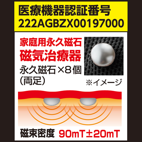 ・足裏に密着する(片方4個)磁気治療器がコリと血行を改善。
