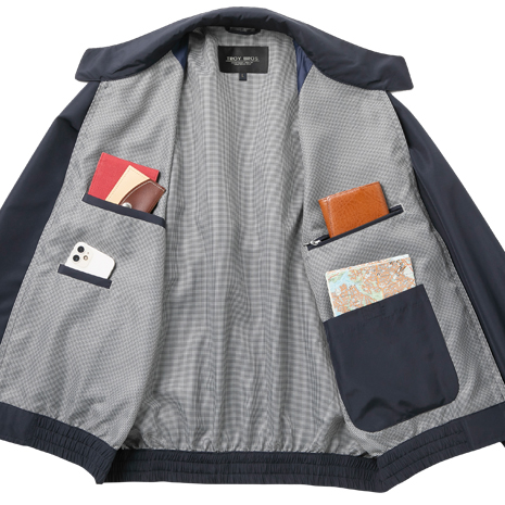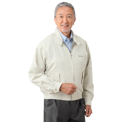 デザインは飽きのこない定番のスイングトップで、お出かけ用に一着あると重宝します。表地には防風・撥水・透湿機能の高密度ポリエステル素材テイジン「TECHJOY(R)」を使用。肩と袖をひと続きに縫い付けたラグラン袖により、腕まわりが楽に動かせて脱ぎ着が非常にしやすい作りになっています。表地には水をはじき、汚れにくい撥水加工を施しています。