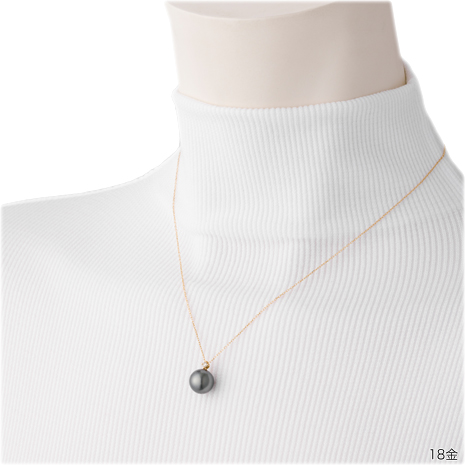 ■素材:南洋黒蝶養殖真珠約10mm珠(花珠、ピーコックグリーンカラー系、ラウンド型)、ダイヤ/1石0.05ct、ペンダント枠・チェーン/K18