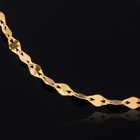 プレスした地金が花びら一枚一枚に見えることからフランス語で『petale(ペタル)』、純金ペタルチェーンのご紹介です。貴金属の代表である純金・純プラチナ。その眩い輝きで人々に愛され、重宝されてきました。本品は”純金”の持つ多彩な魅力をネックレスに詰め込みました。日本で「純金」として認められているのは、純度が99.9%以上のもののみで「K24」と表記されます。純金ならではの、山吹色の深く眩い輝きが魅力です。ジュエリーとして魅力ある純金・純プラチナですが、共に「実物資産」としても高い人気を誇ります。造幣局では貴金属製品の品位試験分析を行い、製品に含まれる貴金属の純度の割合を調べ、合格したものには純度に応じた証明記号を打刻してその品位を証明しています。この証明記号を通称「ホールマーク」と呼び、一般の方々からの信頼も厚く貴金属製品の取引の安定と消費者保護に貢献しています。本品は純金の証明記号が打刻されております。