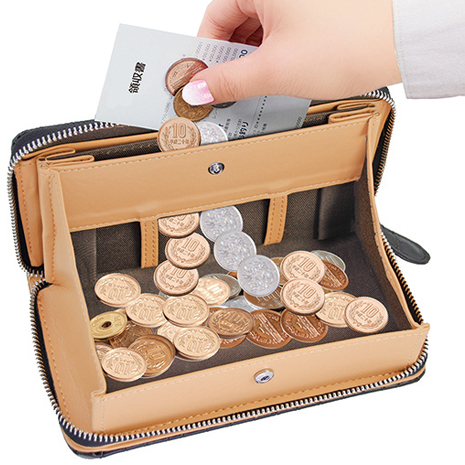 ■仕様:メイン/ファスナー式開閉、側面/ホック式、(メイン)内部/札入×2・ホック式小銭入×1(コインスルー仕様)・カード入×6・ポケット×1、(側面)カード入×13・ポケット×1