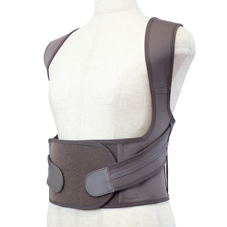 「腹巻にタスキが付いたイメージ」で、ウエストと背中側のベルトを締めるだけで正しい姿勢に導いてくれます。
