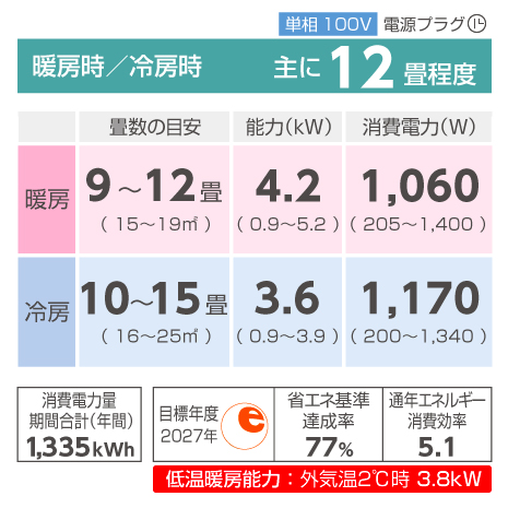 新しく取り付けるエアコンは、サイズ(畳数)が同じでなくても構いません。