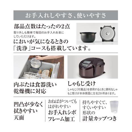 5.お手入れ部品はたったの2点、かんたんお手入れ。内ぶたは食器洗い乾燥機にも対応。