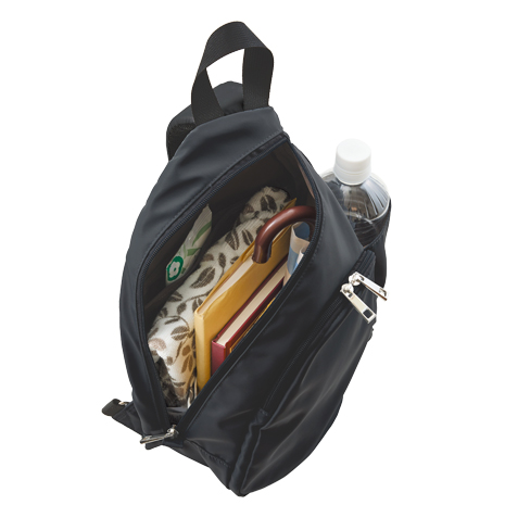 ワンショルダータイプのボディバッグは背負ったまま荷物が取り出せるスマートリュック。