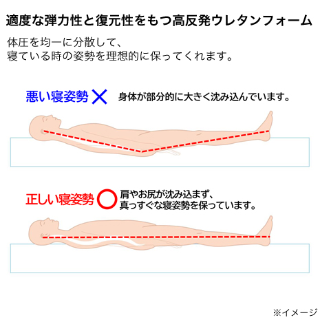●寝た時の正しい姿勢は、肩やお尻が沈み込まず、体が真っすぐ水平な状態と言われています。
