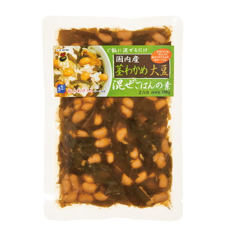 国内産茎わかめと、愛媛県伊予名産「松山あげ」、国内産大豆を使用しています。また、伊吹島産いりこを使用した無添加のだし醤油も使用していますので大変風味豊かです。炊きあがった2合分のホカホカご飯に本製品を混ぜるだけで、ふっくら美味しい混ぜごはんが完成いたします。