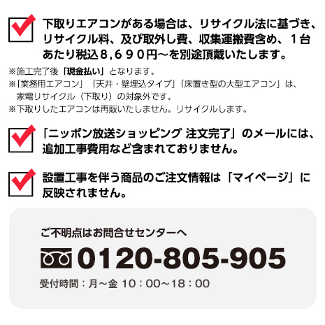※設置日当日のキャンセル及び取り付け後のお客様都合による返品承れませんので【確認事項】をご理解の上お申し込みください。