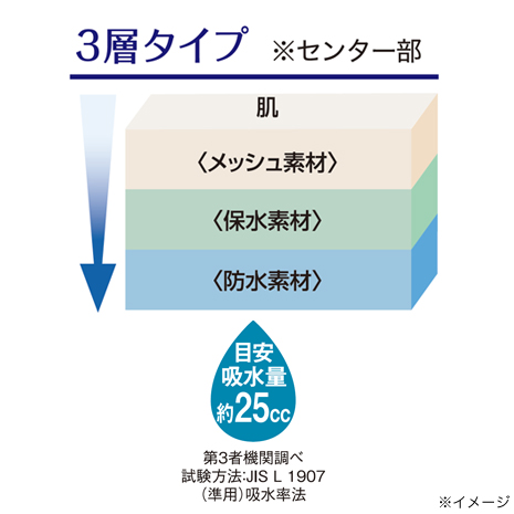 ※吸水量表示はおおよその目安です。使用状況によって吸水量が異なる場合がございます。