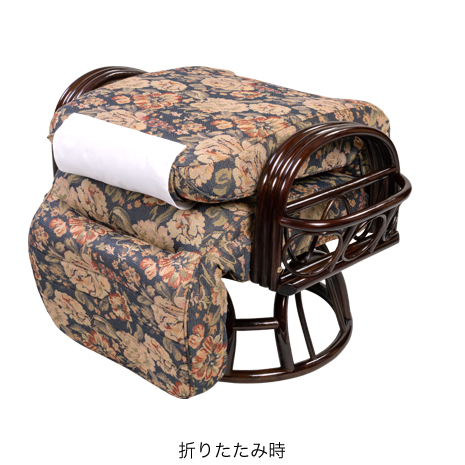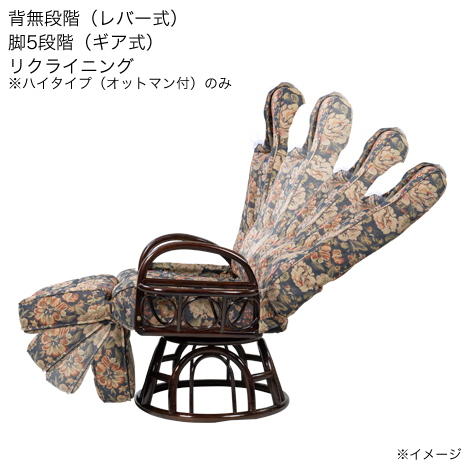 (ハイタイプ・オットマン付)籐リクライニング回転チェア