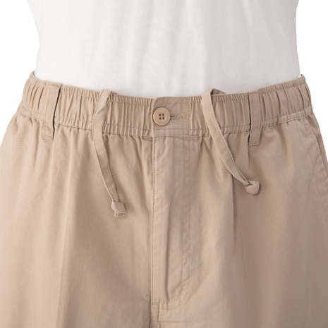 ■仕様:左右ポケット2、左右後ろポケット2、左右サイドポケット2、ウエスト総ゴム(ひも付き)、前あきファスナー、ベルトループ付き、ノータック