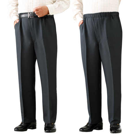品質の高い日本製のオールシーズン活躍する快適パンツです。繊維に吸湿加工を施し汚れを落ちやすくしたスコッチガード加工素材のパンツで、大変使い勝手に優れています。またウエスト総ゴム仕様で、窮屈になりがちなお腹周りも楽々快適です。股下は60cm、65cm、70cmで裾上げしてあり、お届け後すぐにお使いいただけます。ベルトループ付きで、ベルトを通せばスッキリとした印象に。