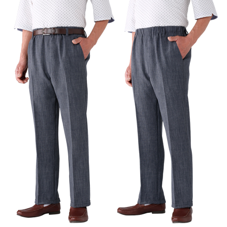 素材は春夏にぴったりのスラブ調で、繊維に吸湿加工を施したスコッチガード加工パンツです。