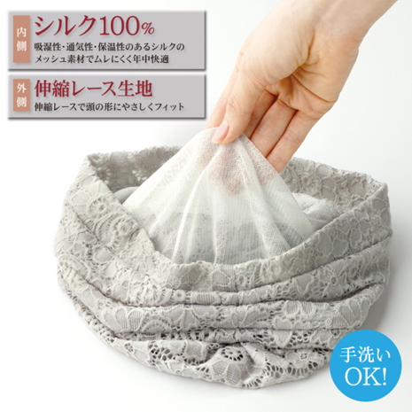 髪にやさしい内側シルクのレース帽子2色組
