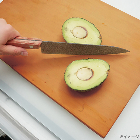 カボチャ、ゴボウなどの硬い食材から、トマトやサンドイッチなどの柔らかい食材まで、ス~ッとした心地よい切れ味で、食材をキレイにカット!抜群の切れ味の秘密は、刃物の産地・岐阜県関市の職人さんが1本1本ハマグリ刃に研いでいるから。刃入りがなめらかで食材に力を入れやすく、強度も保てます。