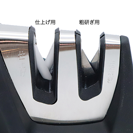 ■素材:刃部/モリブデンバナジウムステンレス刃物鋼(フッ素樹脂加工)、柄部/積層強化木、シャープナー/ABS樹脂・エラストマー樹脂・ステンレス鋼、砥石/(粗研ぎ)タングステン鋼・(仕上げ)セラミック