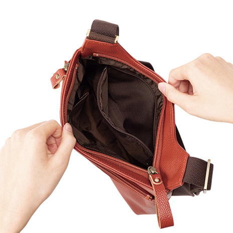 ■仕様:ファスナー式開閉、内部/ファスナーポケット×1、オープンポケット×2、外側ファスナーポケット×1、ショルダーベルト調整可能