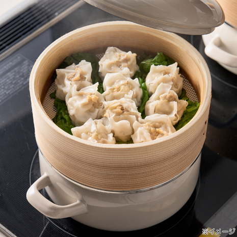 せいろ:天然木・竹、鍋本体・蓋:ほうろう、蓋のツマミ:天然木
