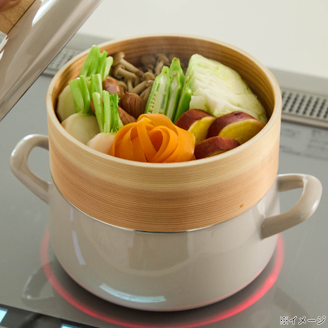 せいろ:天然木・竹、鍋本体・蓋:ほうろう、蓋のツマミ:天然木