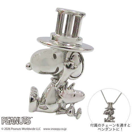 スヌーピーが被っているシルクハットにチェーンを通すとペンダントに早変わり。これぞファン待望の豪華な逸品です。