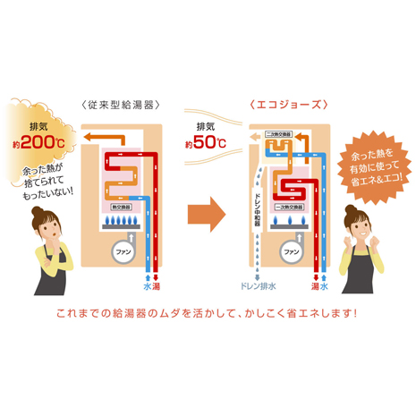 ●低ランニングコストでガス代(水道代)を節約できる省エネタイプ給湯器。